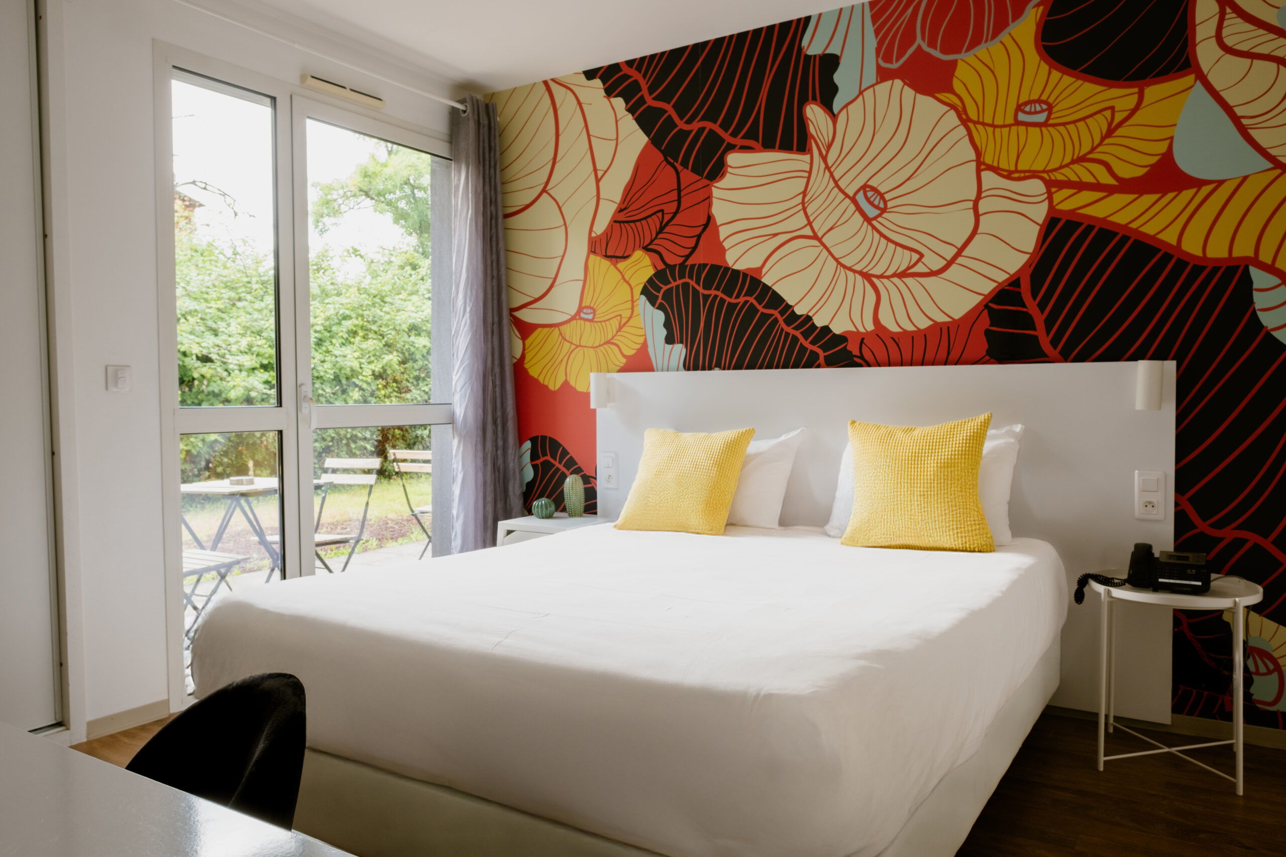 À l’intérieur, les chambres s’inspirent du végétal et du rythme apaisé du lieu. À l’extérieur, la ville reste accessible. Ce contraste discret crée une atmosphère particulière, où l’on peut à la fois couper et rester connecté à ce qui compte.